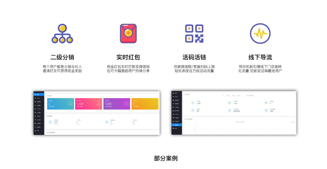 通過實時到賬的分(fēn)銷返傭模型,以現金作(zuò)爲分(fēn)享激勵用戶分(fēn)享,迅速打造爆款引流産品 并通過付費過濾掉小号和羊毛黨獲得(de)精準高質量付費用戶,提升後續正價産品轉化率!